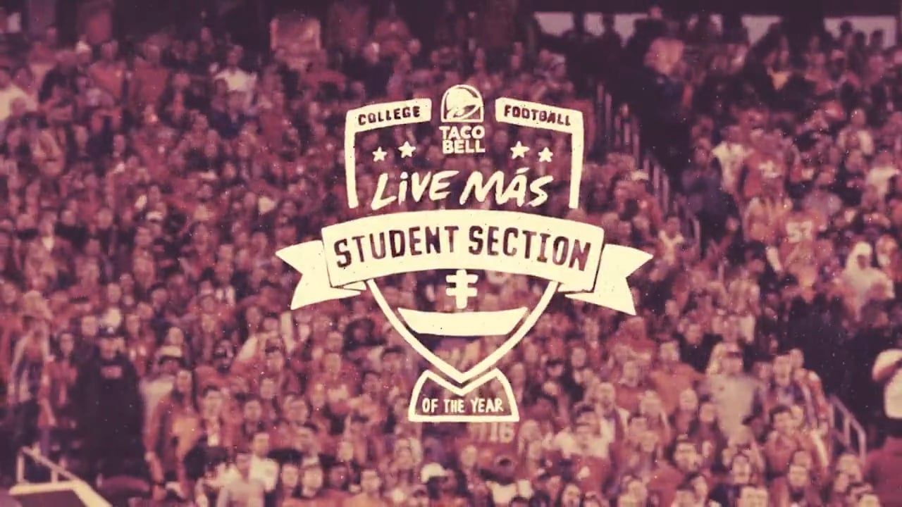 RALLY YOUR SCHOOL TO STUDENT SECTION IMMORTALITY! Which student section in college football will be crowned the Taco Bell Live Más Student Section of the Year? The Live Más Student Section Selection Committee, a group of college football experts from around the country, will watch, rank and reward student sections each week before an overall Live Más Student Section of the Year winner is crowned at the end of the season. Be part of the conversation and show us what makes your student section the best using #LiveMasStudentSectionContest!